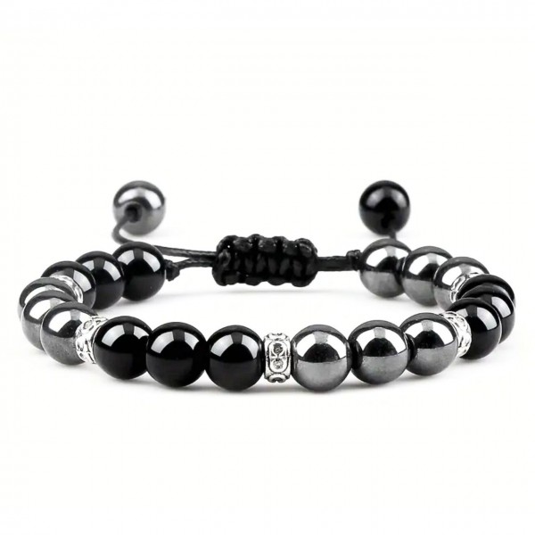 Мужской браслет плетеный с гематитом Посмотреть полный размер