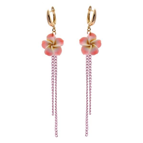 Серьги лимонная позолота "Цветок с цепочками" (Медицинское золото)